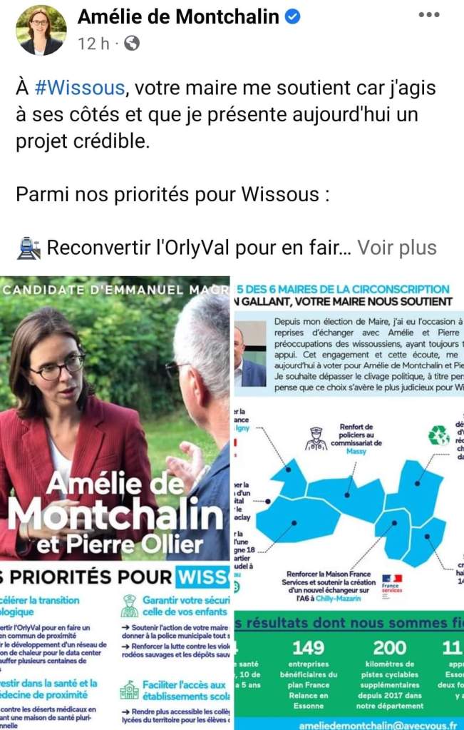 Suite à notre texte concernant les récentes déclarations de Amélie de Montchalin nous apprenons que la ministre vient de recevoir le soutien du maire de Wissous et qu’elle s’affiche en sa compagnie. Florian Gallant avait été élu en cinquième position sur la liste de l’édile précédent, Richard Trinquier et a pris sa place suite à sa démission. Ce dernier occupe toujours une place au conseil municipal, où il soutient son successeur.