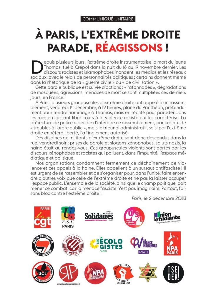 À Paris, l’extrême droite parade, réagissons !