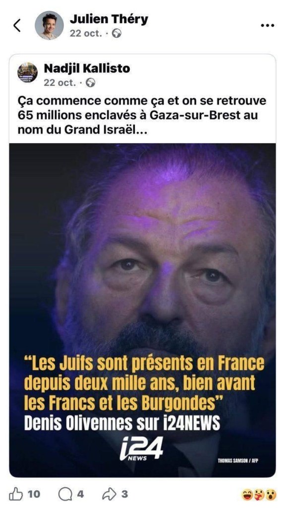 Le 23 octobre 2025, Julien Théry, professeur d’histoire médiévale à l’université Lyon 2 et animateur d’une émission sur le Média, publiait dans la revue Hors Série un article intitulé « Antisémitisme de gauche : la grande fake news ». Dans celui-ci, il entend démontrer l’inexistence d’un antisémitisme de gauche. L’article a beaucoup circulé sur les réseaux sociaux militants. Sa méthodologie est simple. Il s’agit d’un côté de recenser de nombreuses positions antisémites censées démontrer que cette forme de racisme serait forcément d’extrême-droite ; de l’autre de faire une liste de propos ou actes antisémites commis par des personnalités de gauche au cours de l’histoire et de les minimiser ou de les expliquer par imprégnation des préjugés majoritaires. Comme si l’existence d’un antisémitisme à droite était incompatible avec celle d’un antisémitisme de gauche, les catégories gauche / droite distinctes ne s’étant d’ailleurs stabilisées qu’a partir de l’affaire Dreyfus.